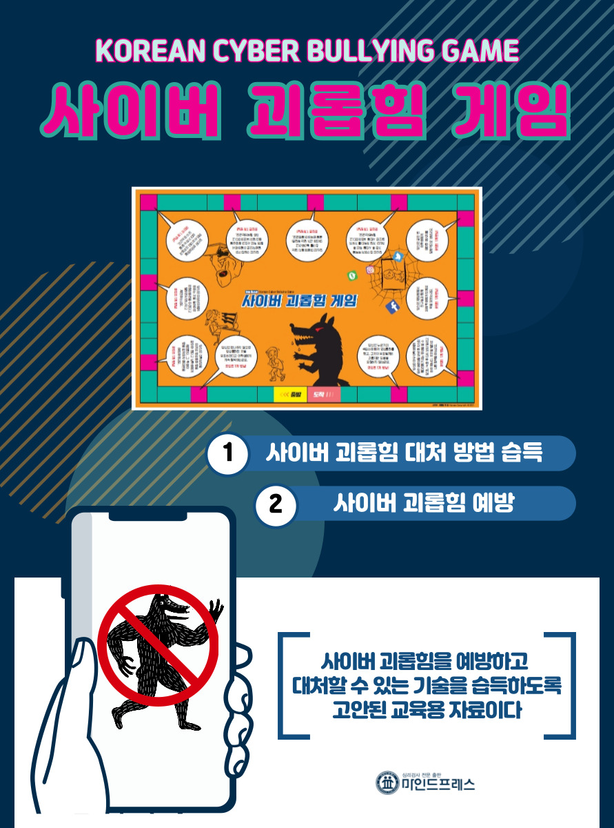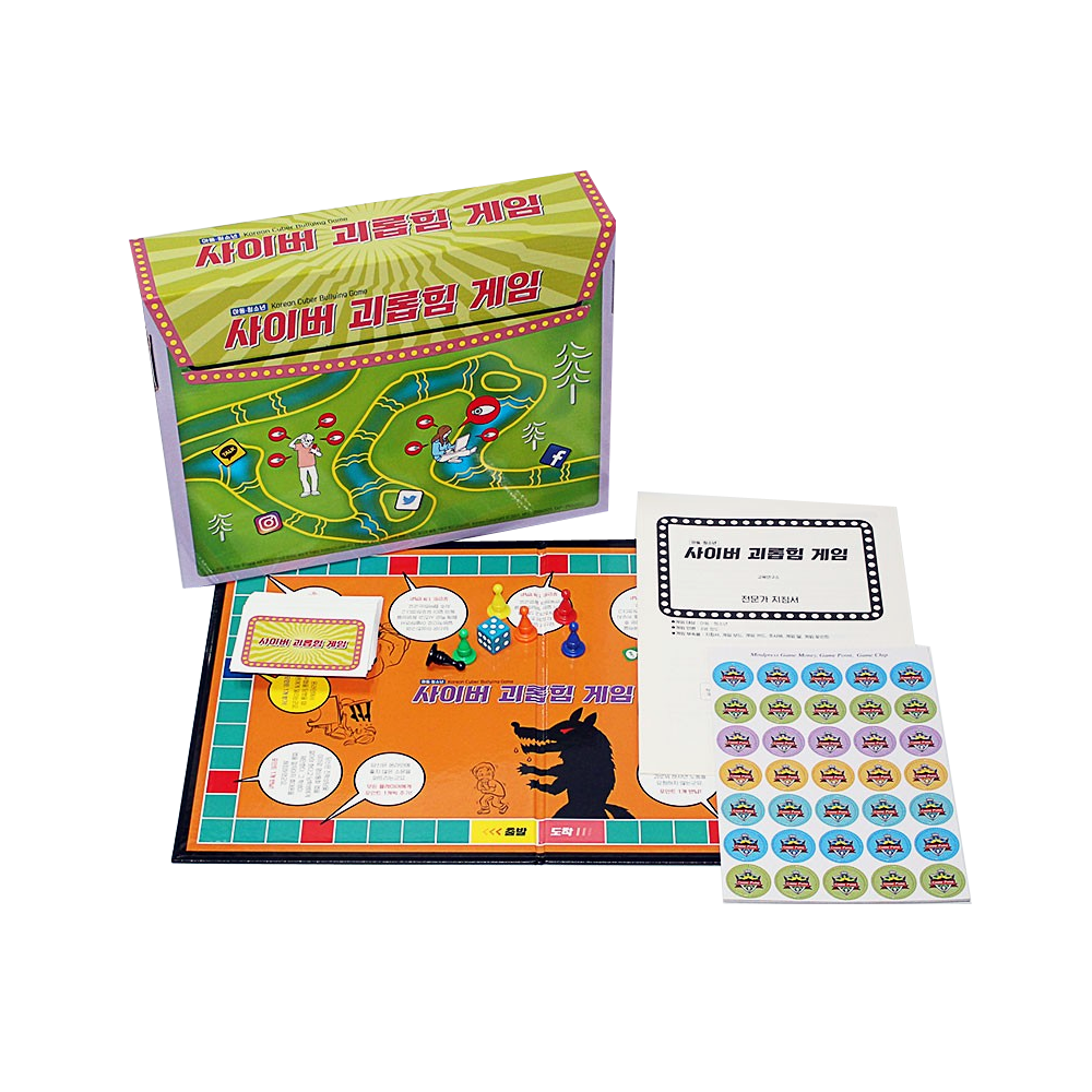 이 게임은 사이버 괴롭힘을 예방하고 대처할 수 있는 기술을 습득하도록 고안된 교육용 자료이다.