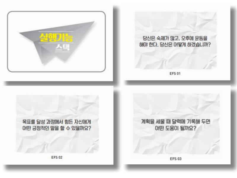 목적 : 실행기능 기술습득 (워킹 메모리, 메타인지, 인내성, 주의력, 실행력, 조직화, 시간관리 등)