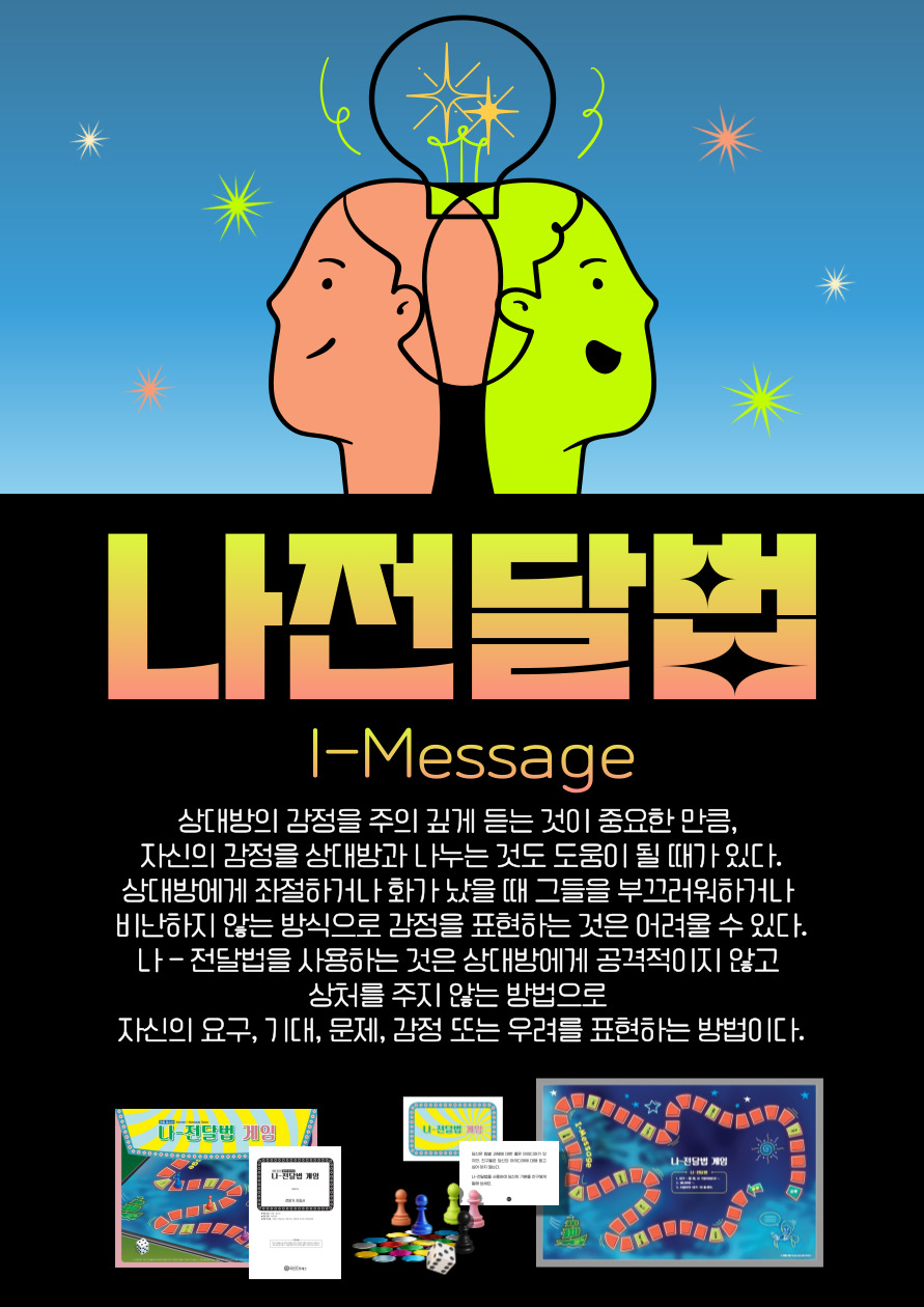 이 게임은 다양한 시나리오를 통해 나-전달법의 기술을 습득하고 효율적으로 의사소통할 수 있는 교육용 게임이다.