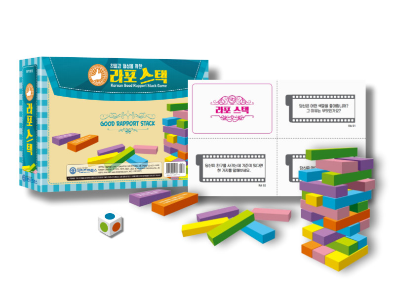 2. 쌓기 방법 •나뭇조각들을 테이블에 질문들이 보이게 흩트려 놓는다. 컬러 젠가인 경우 선 플레이어가 색깔 주사위를 굴 려 나온 색깔과 같은 색의 조각을 골라 질문을 읽고, 적절한 대답을 하면, 게임 머니를 받는다. 그 후에 그 조각으로 탑(스택)을 쌓기를 한다. 탑은 개인별로 혹은 집단별로 쌓기를 할 수 있다. 만일 주사위의 색과 같 은 색의 조각이 없다면, 다시 굴린다. 일반 젠가인 경우는 아무 조각을 하나 골라 질문을 읽고, 적절한 대답 을 하고 난 후에 게임 머니를 받는다. •쌓다가 나뭇조각이 무너지거나 떨어지면, 게임 머니를 각자 한 개 반납하고, 다시 게임을 시작한다. •승자는 게임 머니를 제일 많이 가진 플레이어이다. •나머지 부분들은 빼기 방법과 동일하다.